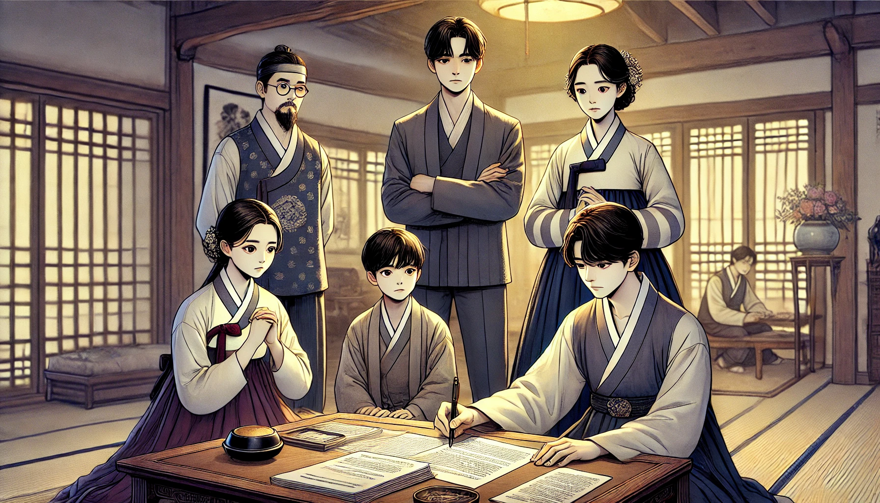 예를 들어, 4형제의 홀아버지가 돌아가신 상황이 아래와 같다고 가정해보겠습니다.