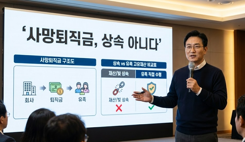 하지만 모든 사망퇴직금이 무조건 고유재산이 되는 것은 아닙니다. 회사의 단체협약, 취업규칙, 퇴직연금 가입 여부 등에 따라 법적 해석이 달라질 수 있습니다.